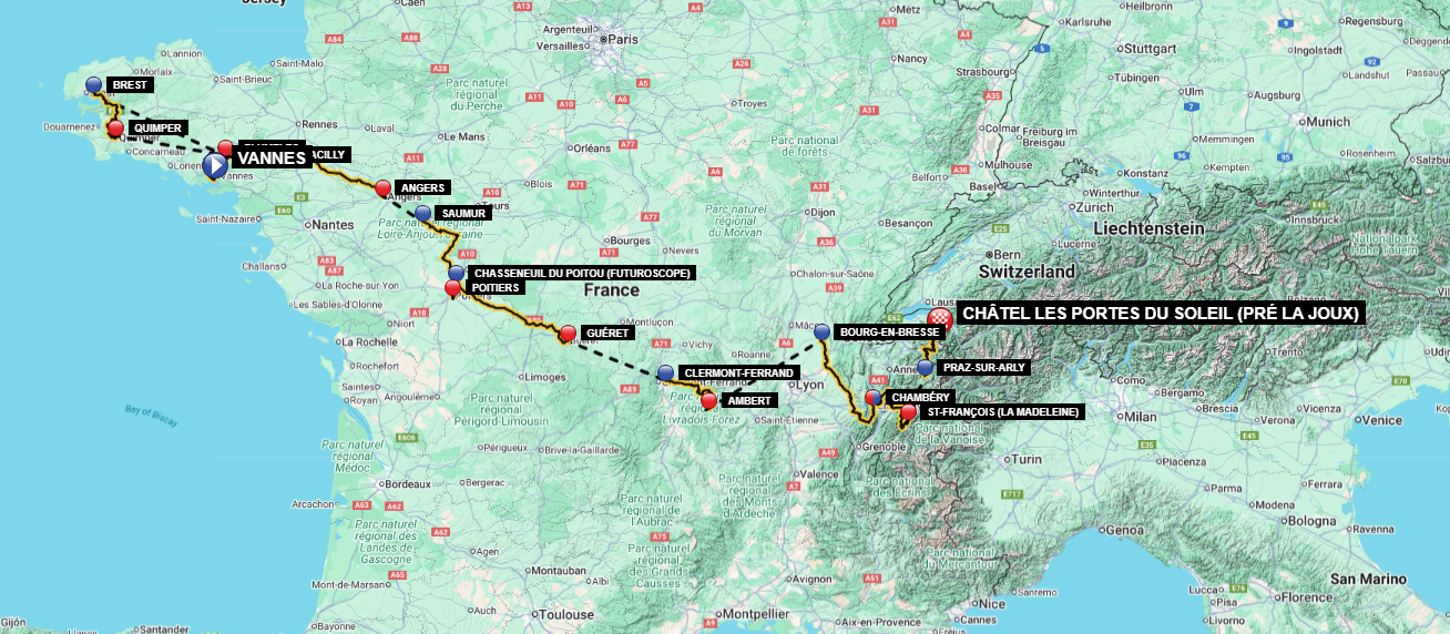El 29 d'octubre de 2024 es va fer la presentació de la prova, amb la gran novetat d'un novè dia de competició, un més que fins llavors.[3] La cursa va sortir de Vannes, a la Bretanya i va constar de 3 etapes planes, 3 de mitja muntanya i 3 d'alta muntanya. No hi va haver cap contrarellotge.[1]